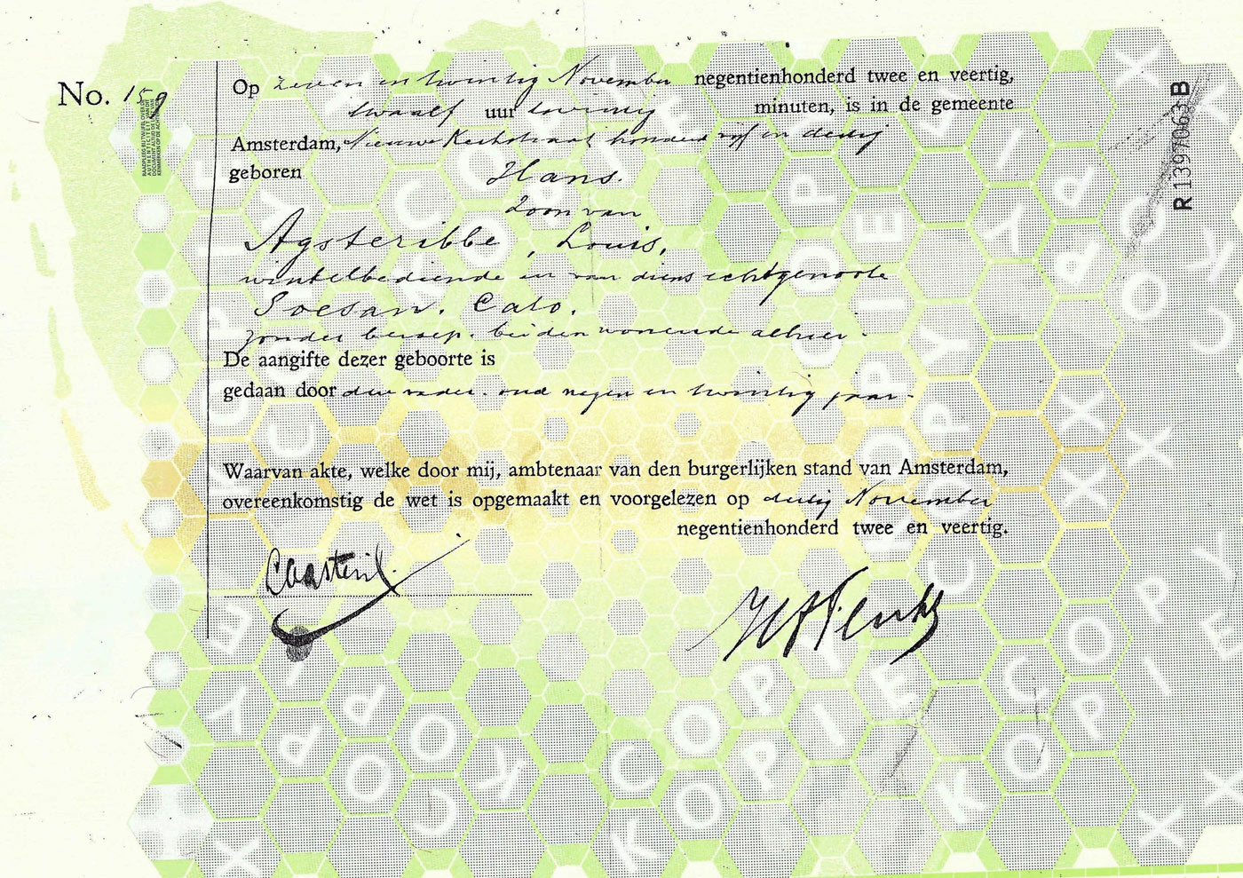 Zowel Louis als Cato komt uit Amsterdam. Louis wordt op 7 december 1912 in Amsterdam geboren. Hij is het eerste kind van Sally en Grietje Agsteribbe-Hamel. Sally is marktkoopman en heeft van maandag tot en met zaterdag een marktkraam in de Dapperstraat. In 1914 krijgt Louis een broertje, Salomon.