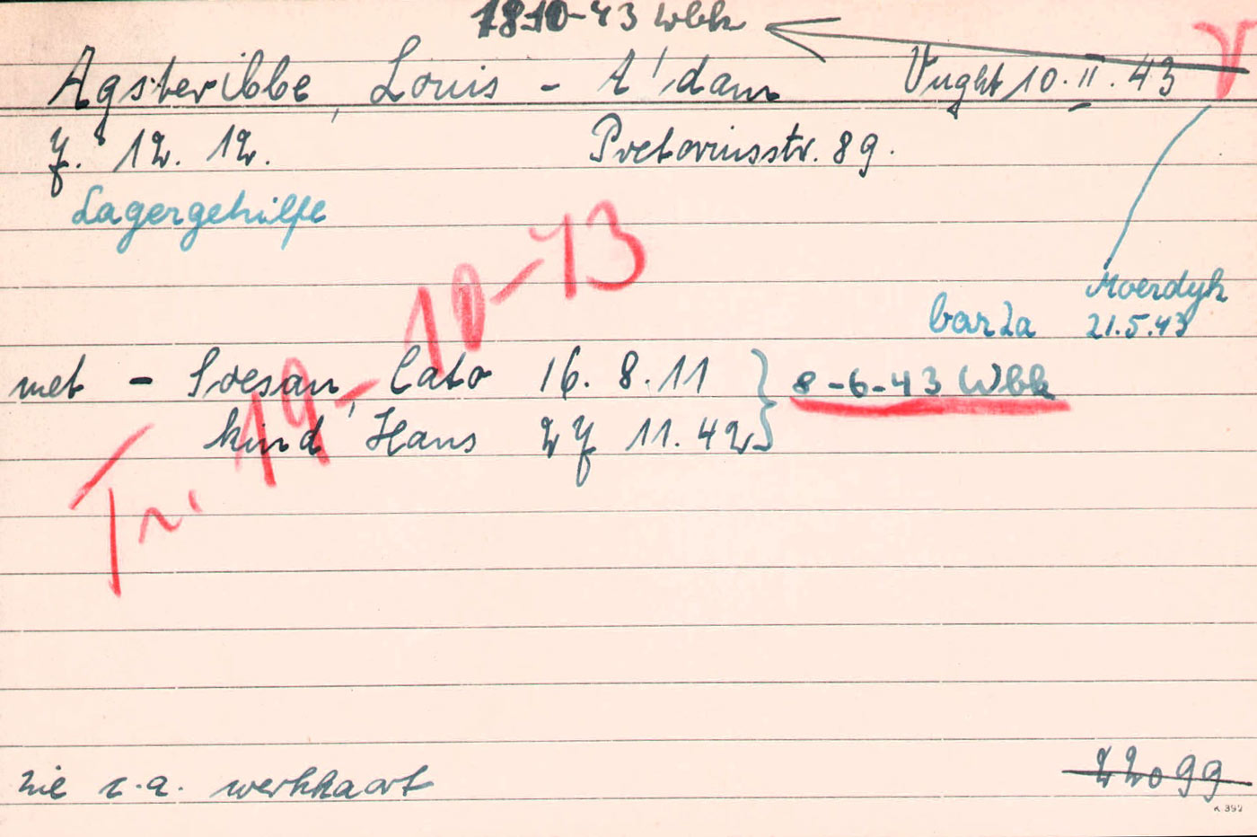 Louis en Cato trekken in bij de ouders van Cato in de Pretoriusstraat. Het leven in de overbevolkte Joodse wijken is geen pretje. Of vader Isaäc Soesan dan nog in Amsterdam is, is onduidelijk. Volgens de gegevens op zijn kampkaart is hij vanwege zijn functie “gesperrt”. Dit betekent dat hij uitstel van deportatie heeft.