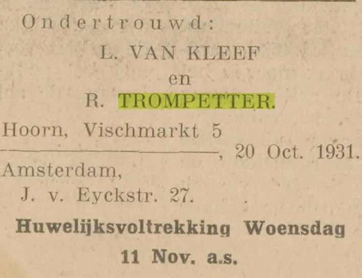 Zijn schoonouders weigeren echter onder te duiken. David en Louisa Trompetter stappen op 20 april 1942 samen met ongeveer zestien andere Joden uit Hoorn op de trein. In Amsterdam komen David en Louisa samen met een onbekende terecht in een eenkamerappartement in Amsterdam aan de Amstel 163-1. “Dat moet voor de altijd actieve David een vreselijke tijd geweest zijn”, denkt achterkleinzoon Thees.
