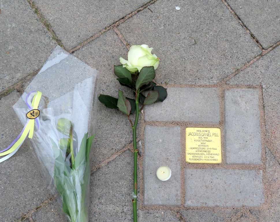 De Hoornse verzetsman Koos Poll, toenmalig directeur van de Rijks HBS (nu OSG West-Friesland), heeft na een straatnaam en een plaquette sinds 22 april 2023 ook een struikelsteen. Op de dag dat hij 78 jaar geleden tijdens een van de vele dodenmarsen door toedoen van de nazi’s in Duitsland om het leven kwam, legden zijn kleinkinderen een struikelsteen. Met het plaatsen van een kaarsje en het leggen van een roos bij de steen, kreeg Jacobus Daniel Poll (1889-1945) postuum alsnog de ceremonie voor een begrafenis die hij nooit heeft gehad.